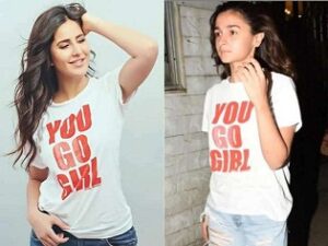 वैसे तो इस लुक में आलिया काफी क्यूट लग रही थीं, लेकिन इस आउटिंग की तस्वीरें सामने आते ही कटरीना कै फैन्स ने इस अदाकारा को ट्रोल करना शुरू कर दिया। उन्होंने कैट की उस तस्वीर को पोस्ट करना शुरू कर दिया, जिसमें वह भी आलिया जैसी ही सेम ‘You Go Girl’ टी-शर्ट पहनी नजर आई थीं। कुछ लोगों ने दोनों की टू-फ्रेम तस्वीर तक पोस्ट की।